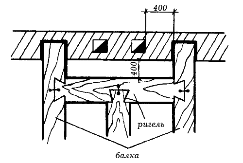 Рис. 7. Возведение балок перекрытия у дымовых каналов (размеры даны в мм)