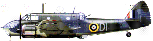 Бристоль «Бофорт» Mk.I N1113 D1 из 3-го OUT Берегового Командования, Чайвенор, Великобритания, июнь 1941 года. Камуфляж по схеме К: верхние поверхности – Extra Dark Sea Grey и Dark Slate Grey, нижние – Sky.