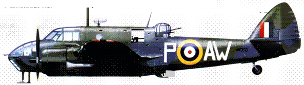Бристоль «Бофорт» Mk.IIA .AW 350 AW-P из 42-й зскадрильи, Лейчарс, Шотландия, май 1942 года. Камуфляж по схеме А: верхние поверхности – Extra Dark Sea Grey и Dark Slate Grey, нижние – черные.