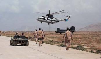 На место падения вертолета вылетели на следующий день. Наш Ми-26 сопровождали три вертолета Chinook, которые летели веером на 300 метров ниже Ми-26. Над местом падения американского вертолета кружили два Apache и два истребителя, 120 десантников охраняли место падения на земле.