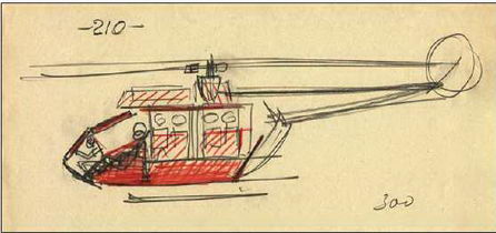 Рисунок вертолета с кабиной экипажа и расположением летчика и стрелка