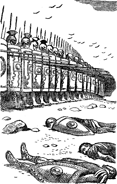 Спендий отдал приказ напасть на фалангу одновременно с двух флангов, чтобы пройти через все насквозь. Но самые узкие ряды, проскользнув под самыми длинными, вернулись на свое прежнее место, и фаланга повернулась к варварам, такая же страшная с боков, как была перед тем с фронта.