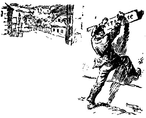 Около пяти часов дня «граф Монтекрист» лично проследовал по главной улице города и по свежим табличкам, приколоченным на перекрестках, установил, что эта улица теперь именуется «Проспектом Адольфа Гитлера». Убедившись, что вблизи почти нет прохожих (приближался час, когда уличное движение должно было прекратиться), Мишкин немедленно приступил к работе Он сорвал табличку, счистил с нее перочинным ножом свежую надпись и вместо нее старательно вписал химическим карандашом.