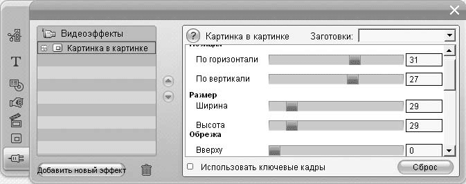 Рис. 8.6. Настройка эффекта Картинка в картинке на вкладке видеоэффектов