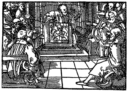 На следующий день собрались все доктора и ученые. Тем временем явился и Уленшпигель и привел с собой хозяина гостиницы, несколько других бюргеров и несколько дюжих подмастерьев на случай, если студенты нападут на него.