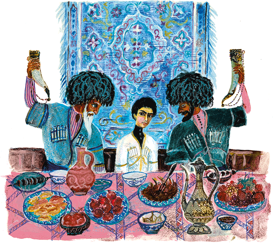 Девушки одна за другою снова выходили на середину и с блестящими глазами отплясывали лезгинку. К ним присоединялись юноши-лезгины, стараясь превзойти друг друга в искусстве танцев. Только юный бек Израил, жених Бэллы, сидел задумчивый между дедом Магометом и своим отцом наибом. Мне было жаль молоденького бека и Бэллу, связанных навеки друг с другом по желанию старших, и я искренне пожелала им счастья… Лезгинка кончилась, и выступил сазандар со своей чиунгури. Он пел о недавнем прошлом, о могучем черном орле, побежденном белыми соколами, о кровавых войнах и грозных подвигах лихих джигитов… Мне казалось, что я слышала и вой пушек, и ружейные выстрелы в сильных звуках чиунгури… Потом струны запели о белом пленнике и любви к нему джигитской девушки. Тут была целая поэма с соловьиными трелями и розовым ароматом… Седые важные лезгины, престарелые наибы соседних аулов и гордые беки слушали, затаив дыхание. Он кончил, и в его ветхую папаху, встретившую не одну непогоду под открытым небом, посыпались червонцы.