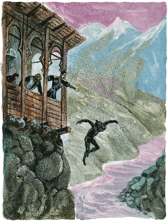 При виде вооруженных людей Абрек сделал невероятное усилие и, вырвавшись из сильных рук Брагима, с быстротой молнии вскочил на подоконник и, крикнув «айда», спрыгнул вниз с высоты нескольких саженей прямо в тихо плещущие волны Куры… Это был смелый прыжок, которому мог бы позавидовать любой джигит Кавказа…