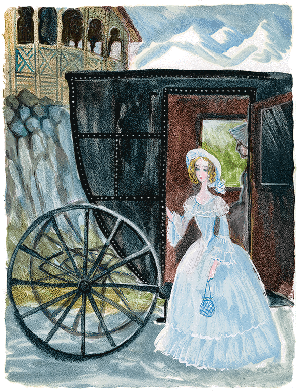 Отец, куря папиросу, сидел на террасе в ожидании гостей. Вдруг он неожиданно вздрогнул. Послышался шум колес, и к нашему дому подъехал небольшой шарабанчик, в котором сидели две дамы: одна пожилая, другая молоденькая в белом платье – нежное белокурое создание с мечтательными глазами и тоненькой, как стебель, талией. Она легко выпрыгнула из шарабана и, ловко подобрав шлейф своего нарядного шелкового платья, пошла навстречу отцу. Он подал ей руку и поманил меня.