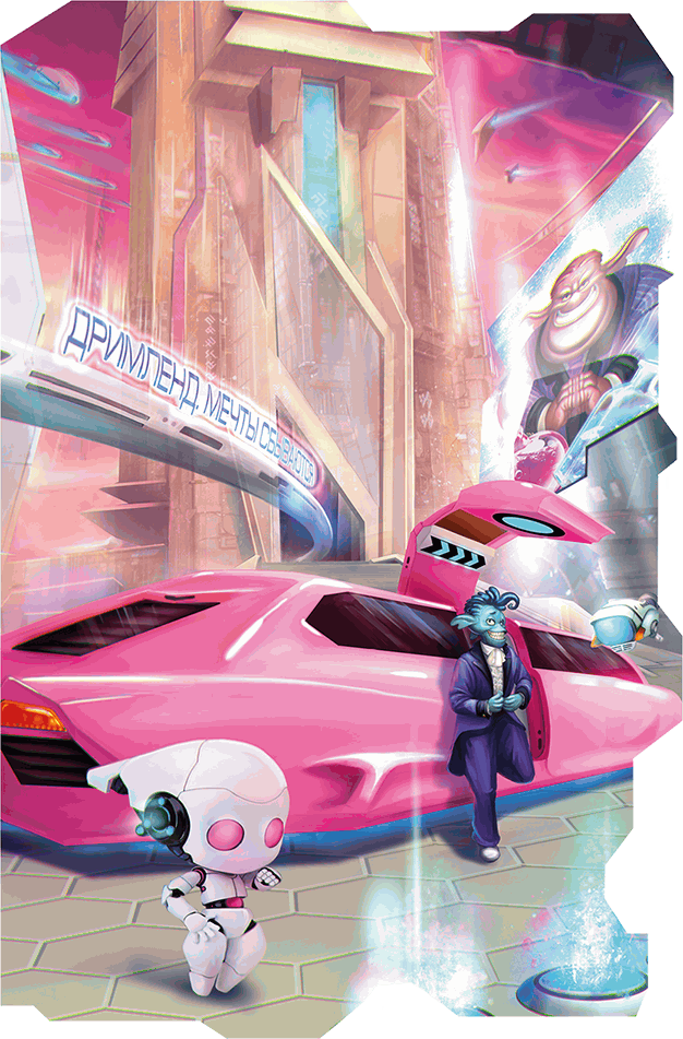 На Дримленде есть всё, о чём мы когда-нибудь мечтали. Там огромные города с великолепными замками, летающие машины, самые невероятные девайсы, которые успевают предупредить любое желание. Не успеет дримлянин захотеть, как специальный маленький робот, следующий за ним, уже предлагает ему стакан сладкой газировки.