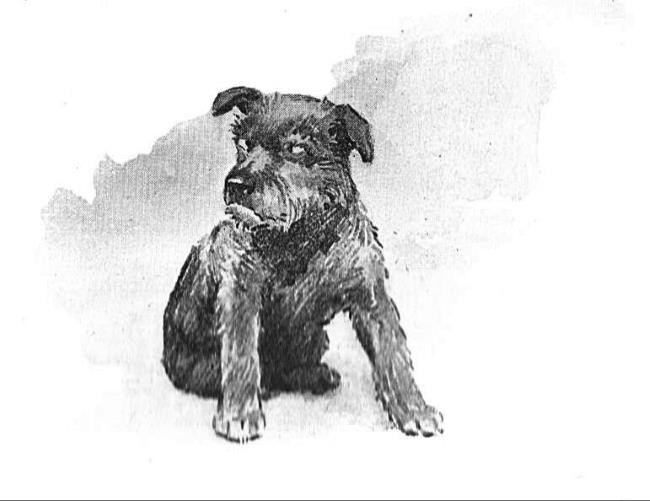 Мы вынесли корзину в сад, и из неё, пошатываясь, появилась угловатая тень песочно-пёстрого терьера с растрепанной шерстью, с одним слабоумным и одним безумным ухом и парой премерзко косящих глаз. Беттина и Малахия, уже сцепившиеся на лужайке, увидели щенка, не тронули и разбежались в разные стороны.