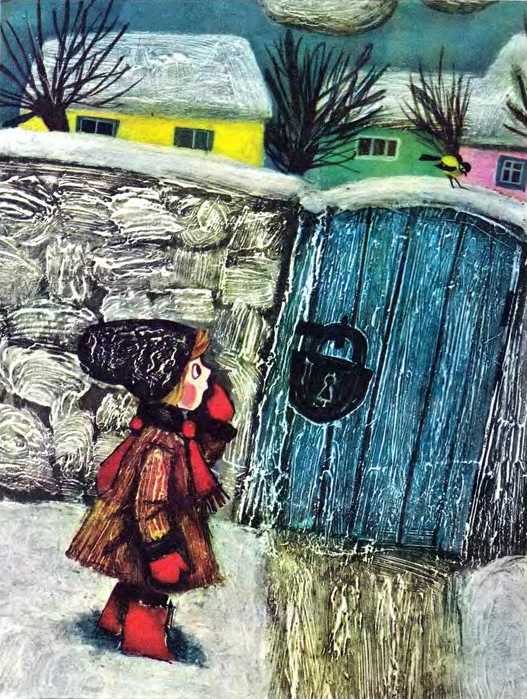 — Искать снежного деда, — ответил Чубо. — Баба просит. Вернулся Чубо домой, а калитка-то заперта. Он быстро слепил снеговика, забрался к нему на плечо — и через забор.