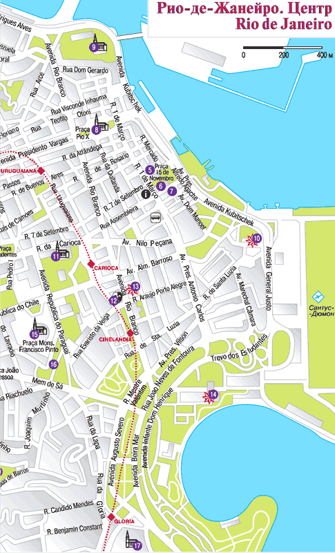 Впрочем, опасные и безопасные районы бывшей столицы так перемешаны, что пешком лучше исследовать кварталы расположенные вдоль побережья к югу от района Centro: Lapa, Gloria, Catete, Flamengo, Botafogo, и Urca, над которым возвышается пик Pao de Acucar.