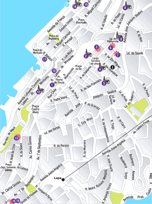 Pelourinho, rua das Laranjeiras, 12 (ул. Ларанжейрас), тел. 13 21 24 63, ежедн. 8.30–22.00.